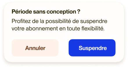 Bénéficiez d’un tarif fixe tous les mois, avec la liberté de mettre en pause ou d’annuler à tout moment.